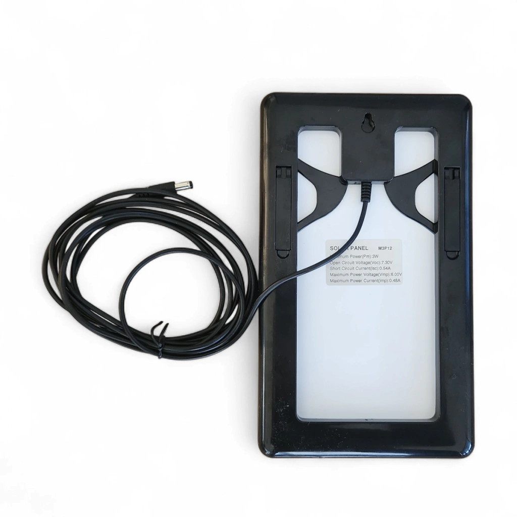 • Recarga por panel solar: 9V – 3W (incluido)